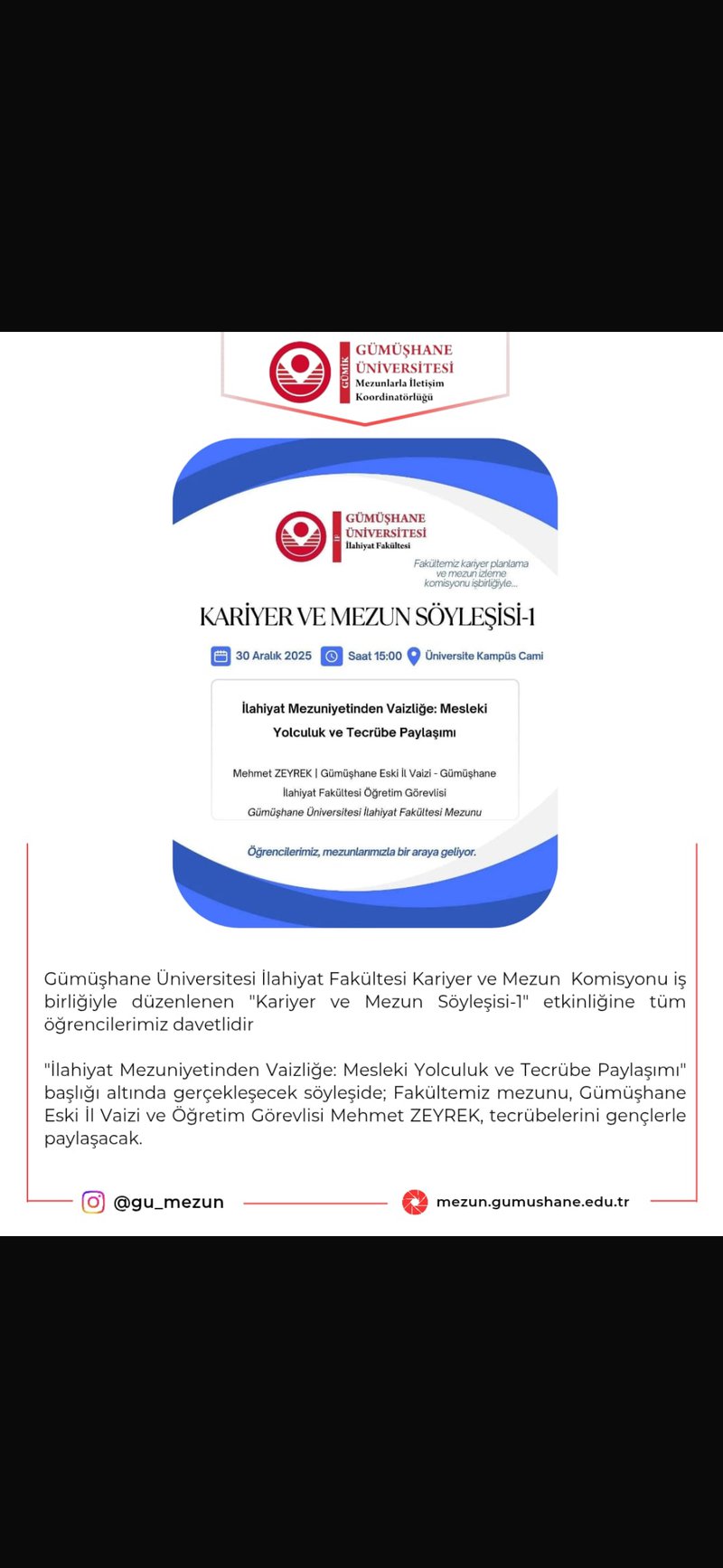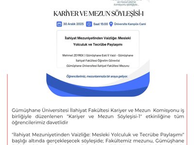 İlahiyat Fakültesi Kariyer Mezun Söyleşisine Tüm Öğrencilerimiz Davetlidir